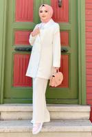 EKRU KRUVAZE YAKA PANTOLONLU TAKIM T 3928 DETAYLARI
