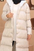 EKRU ÇITÇITLI KAPÜŞONLU ŞİŞME KABAN 8503