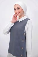 GRİ ÇİZGİLİ ÜÇLÜ YELEKLİ TAKIM T 5443 DETAYLARI