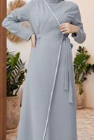 GRİ YANDAN BAĞLAMALI ELBİSE 70001 DETAYLARI
