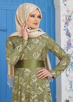HAKİ KUŞAKLI DANTEL ABİYE ELBİSE 2341
