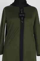 HAKİ ALVİNA ŞERİT DETAYLI BONCUK İŞLEMELİ TUNİK 2852