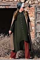 HAKİ ASİMETRİK KESİM DÜĞMELİ UZUN TUNİK 4502 DETAYLARI