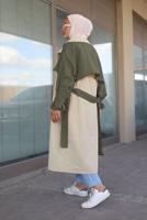 HAKİ KUŞAKLI CEPLİ İKİ RENK TRENÇKOT 80080