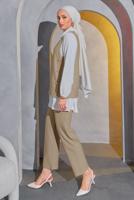 Yelek tunik ve pantolon olmak üzere üç parçadan oluşmaktadır.