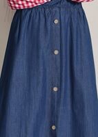 İNDİGO DÜĞME DETAYLI BELİ LASTİKLİ DENİM ETEK 0002 DETAYLARI