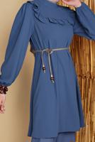 İNDİGO HASIR KEMER DETAYLI VOLANLI TUNİK 0281