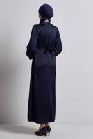 LACİVERT SATEN ABİYE ELBİSE T 0821 DETAYLARI