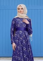 SAKS KUŞAKLI DANTEL ABİYE ELBİSE 2341