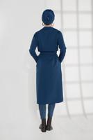 İNDİGO BELİ KUŞAKLI VE BÜZGÜLÜ CEKET 3007 DETAYLARI