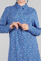 İNDİGO ÇİÇEK DESENLİ GİZLİ DÜĞMELİ TUNİK 4804-1