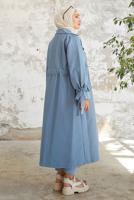 İNDİGO BELİ BÜZGÜLÜ TRENÇKOT 60080 DETAYLARI