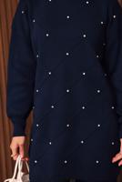 Tunik astarsız, dik yaka, cepsiz, taş baskılı, triko kumaş.