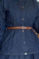 Tunik uzun kollu, astarsız, gömlek yaka, düğmeli, cepsiz, kemerli.