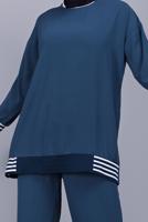 LACİVERT ÇİZGİLİ LASTİKLİ PANTOLONLU TAKIM 8131 DETAYLARI
