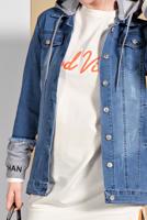 MAVİ PARÇA DETAYLI KAPÜŞONLU DENİM CEKET 1007