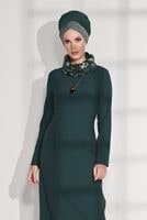 PETROL KÜRK YAKALI DAR ELBİSE 4846