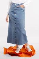 MAVİ CEPLİ ÖNÜ ÇITÇITLI DENİM ETEK 8032