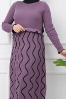 MOR ETEĞİ DESENLİ TRİKO ELBİSE 0728 DETAYLARI