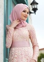 PUDRA KUŞAKLI DANTEL ABİYE ELBİSE 2341