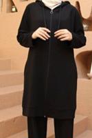 SİYAH FERMUARLI KAPÜŞONLU İKİLİ PANT. TAKIM 10001