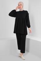 SİYAH FIRFIR DETAYLI ROBALI SALAŞ TAKIM T 20188