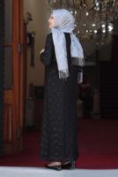 SİYAH DANTELLİ PUL DETAYLI ABİYE ELBİSE 3923 DETAYLARI