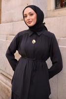 Tunik uzun kollu, astarsız, gömlek yaka, düğmeli, bağcıklı.