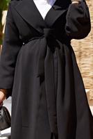 SİYAH KRUVAZE YAKA KUŞAKLI İKİLİ PANTOLONLU TAKIM 55000 DETAYLARI