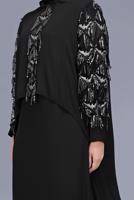 SİYAH-GÜMÜŞ ALVİNA PUL PAYET DETAYLI İKİLİ ELBİSELİ ABİYE 5602 DETAYLARI