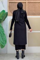 SİYAH KRUVAZE YAKA UZUN YELEK T 6987 DETAYLARI