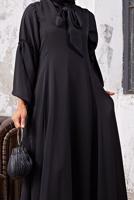 SİYAH BOYUNDAN BAĞLAMALI FIRFIR DETAYLI İKİLİ ELBİSELİ TAKIM 7110