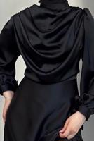 SİYAH DEGAJE YAKA ABİYE ELBİSE T 9116 DETAYLARI