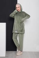 ÇAĞLA YAZI DETAYLI KAPÜŞONLU KADİFE İKİLİ PANT. TAKIM 0596