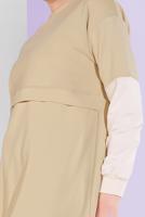 ÇAĞLA-EKRU MANŞETLERİ LASTİKLİ BİSİKLET YAKA TUNİK 30125