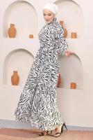 SİYAH ZEBRA DESEN KUŞAKLI PAMUKLU ELBİSE 45001 DETAYLARI