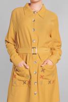 Manken Bilgileri: Boy:1.78 Göğüs:85 Bel:63 Basen:92 Kumaş Bilgileri: %100 pamuk Ürün Uzunluğu: 105 cm Ürün Astarsızdır. Ürünün düğmeleri açılabilir. Manken Üzerindeki Beden: S bedendir. Ürün kumaşı: Pamuklu kumaştan üretilmiştir. Ürüne kemer  dahildir.