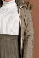 Manken Bilgileri: Boy:1.75 Göğüs:85 Bel:63 Basen:92 Kumaş Bilgileri: %100 polyester Ürün Uzunluğu: 104 cm Ürün Astarlıdır. Çıtçıtlı ve fermuarlıdır. Kapüşonu düğmeli çıkartılabilirdir. Manken Üzerindeki Beden: 38 bedendir. Ürün kumaşı: Kışlık kumaştan üretilmiştir. Aksesuarlar ürüne dahil değildir.
