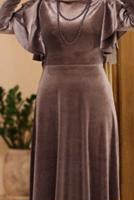 VİZON KOLLARI FIRFIRLI KADİFE ELBİSE 40001 DETAYLARI
