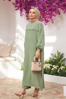Manken Bilgileri: Boy:1.75 Göğüs:85 Bel:63 Basen:92 Kumaş Bilgileri: % 50 viskon % 45 polyester % 5 likra Ürün Uzunluğu: Tunik: 135 cm Pantolon: 106 cm Ürün Astarsızdır. Tunik arkadan düğmelidir ve kol bilek detayı lastiklidir. Pantolonun beli lastiklidir. Manken Üzerindeki Beden: 38 bedendir. Ürün kumaşı: Yazlık kumaştan üretilmiştir. Aksesuarlar ürüne dahil değildir. Ürün renkleri, çekimlerdeki ışık farklılıklarından veya monitör/telefon ekranlarındaki renk ayarlarına bağlı olarak bazı ürünlerde değişiklik gösterebilir.