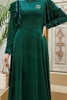 ZÜMRÜT KOLLARI FIRFIRLI KADİFE ELBİSE 40001