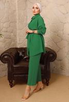 YEŞİL DÜĞMELİ KUŞAKLI İKİLİ PANTOLONLU TAKIM T 4492